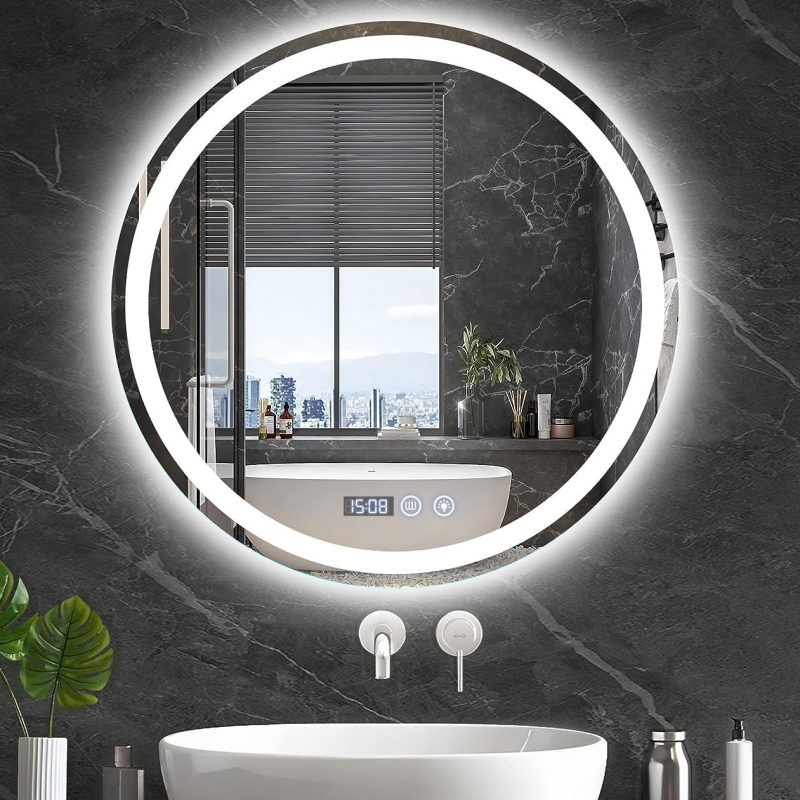Espejo 60 cm diametro (touch, desempañador y hora)
